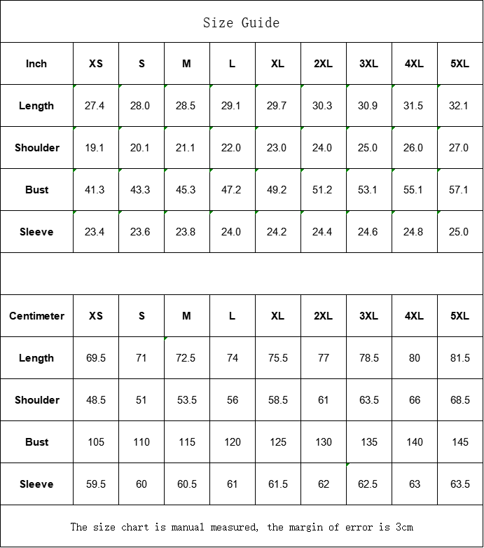 Centimeter XS S M L XL 2XL 3XL 4XL 5XL